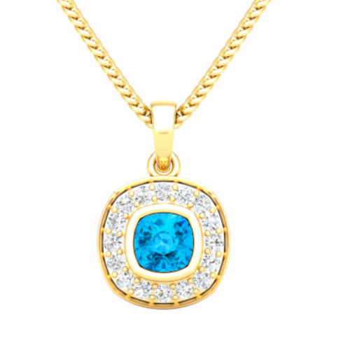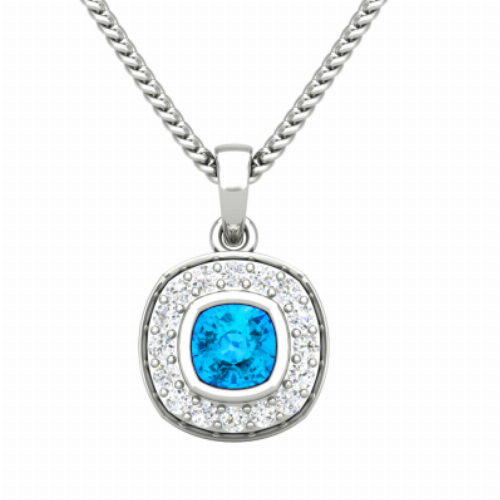 Bright finely cut accent gemstones that encircle a lit cushion make this design an all time classic.